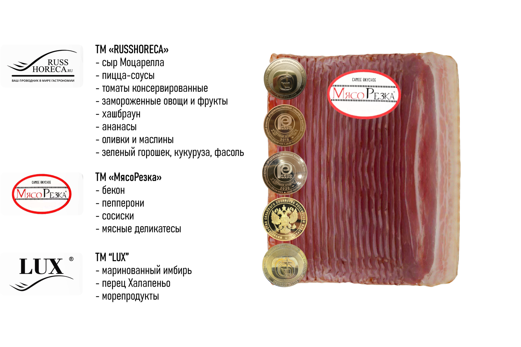 имеем собственное производство бекона и мясных деликатесов под ТМ «Мясорезка»